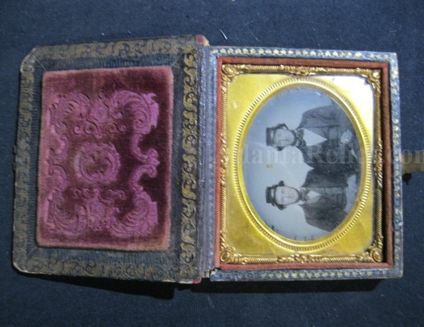 Nice 1/6th plate ambrotype of two Union soldiers. The image is on clear red glass and housed in a very rare period case.